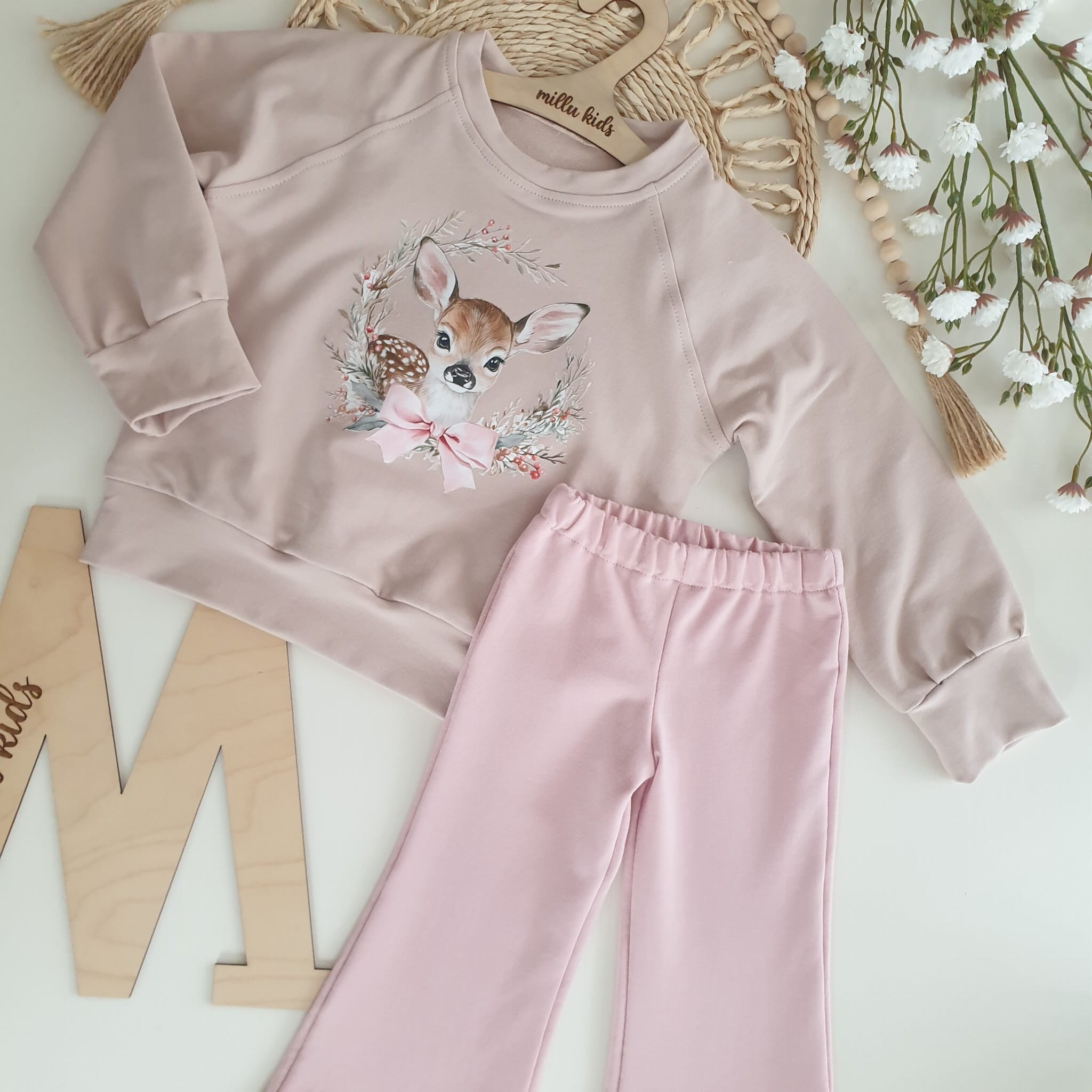 Do kompletu dostępne są również pasujące spodnie dzwony, które w połączeniu z bluzą tworzą wyjątkowy zestaw dla każdej małej fashionistki.