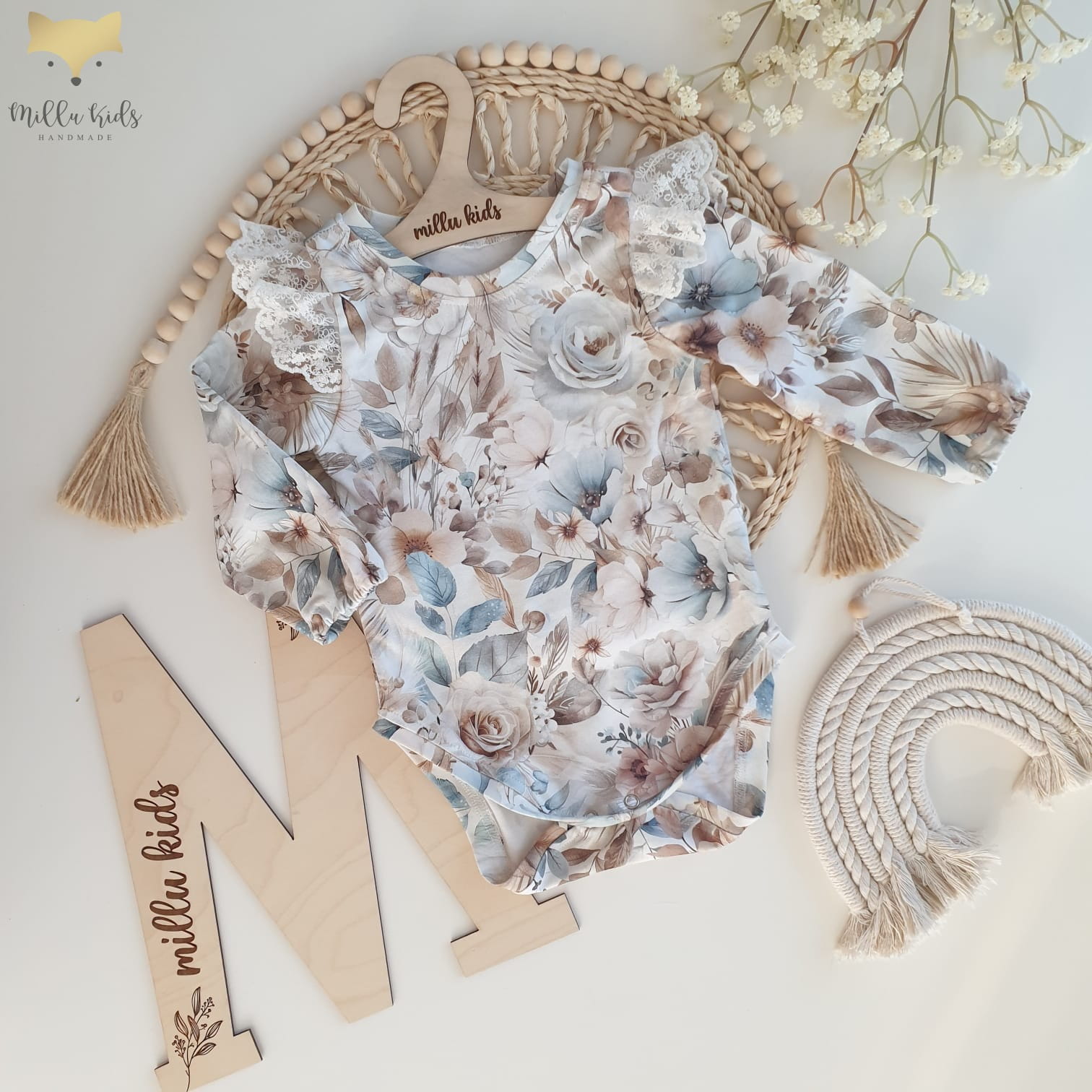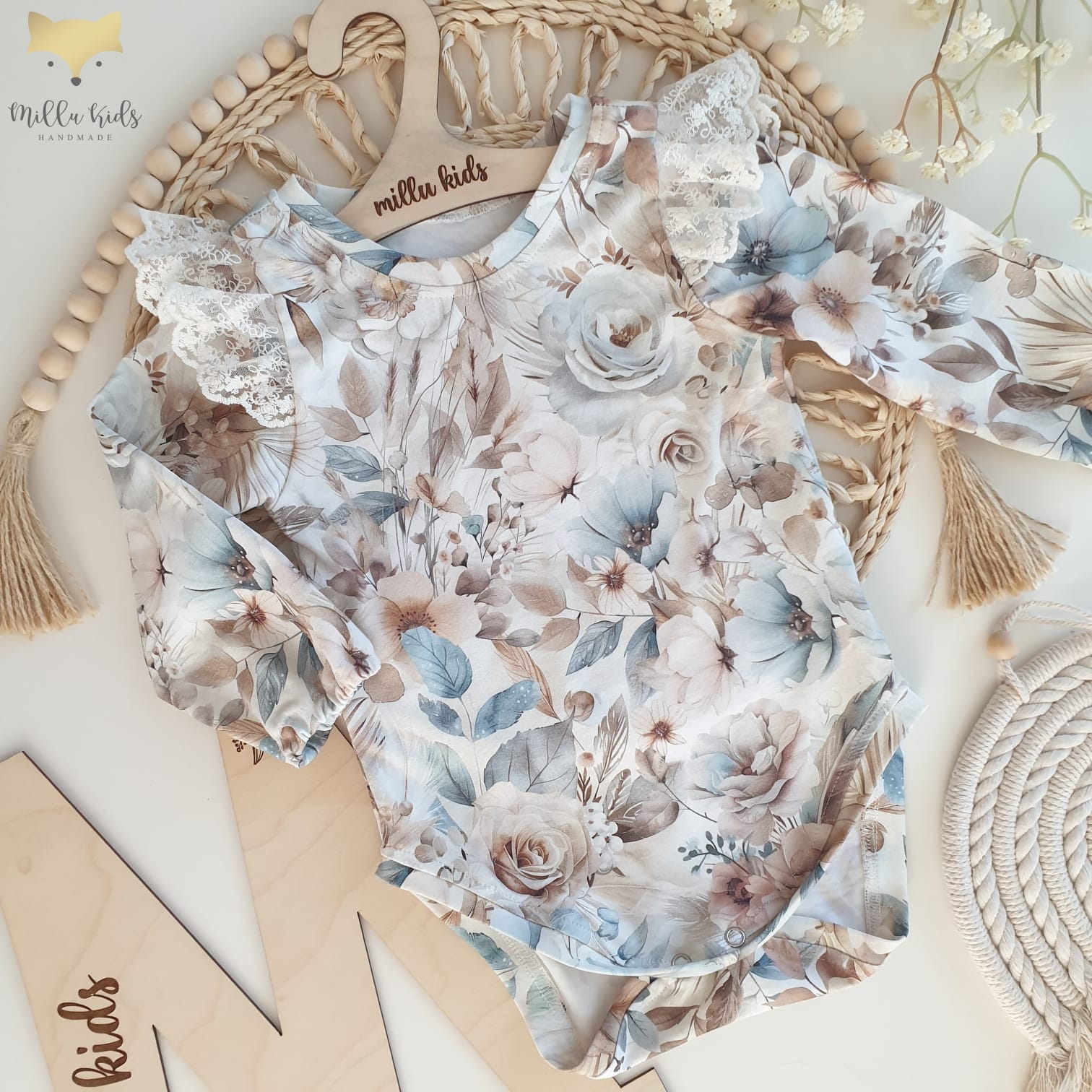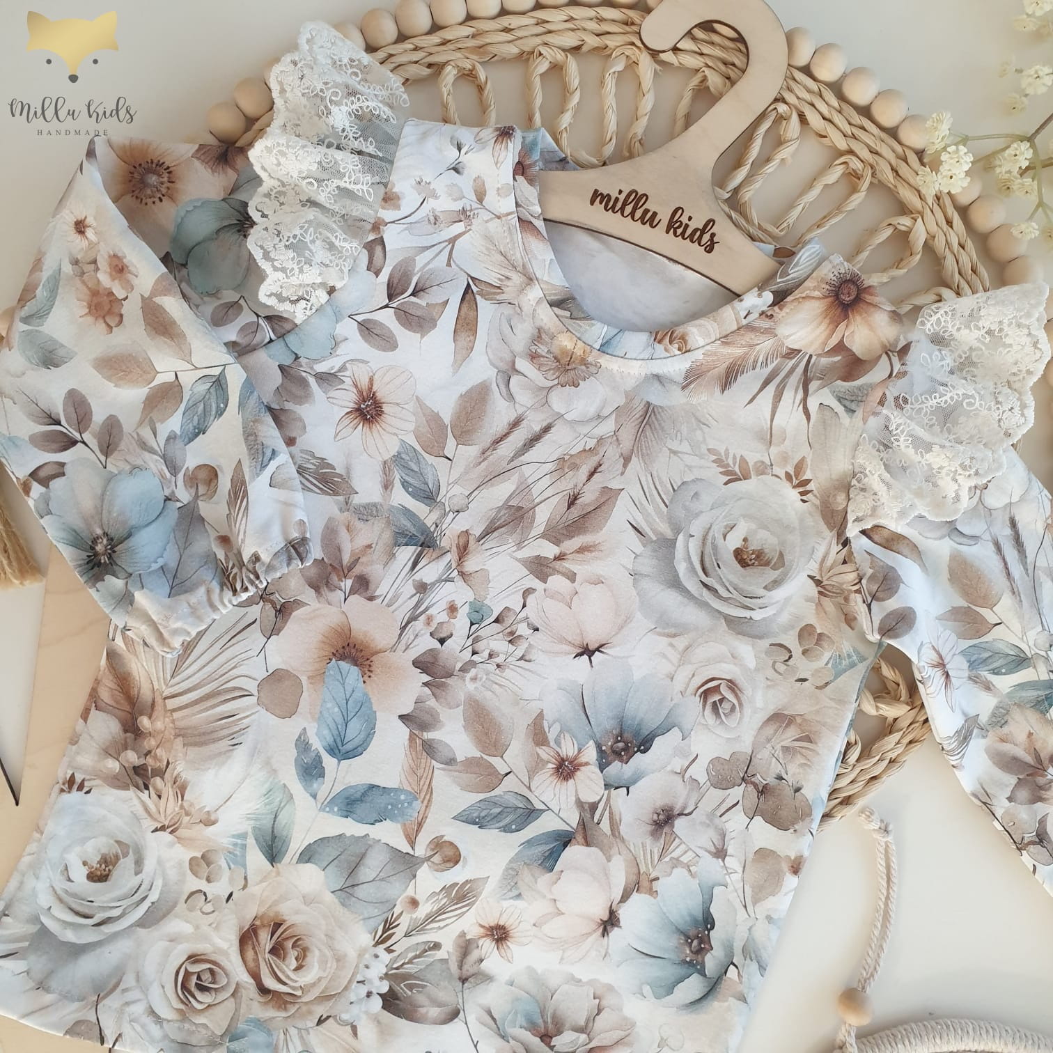 Na ramionach delikatne falbaneczki z przepięknej koronki.