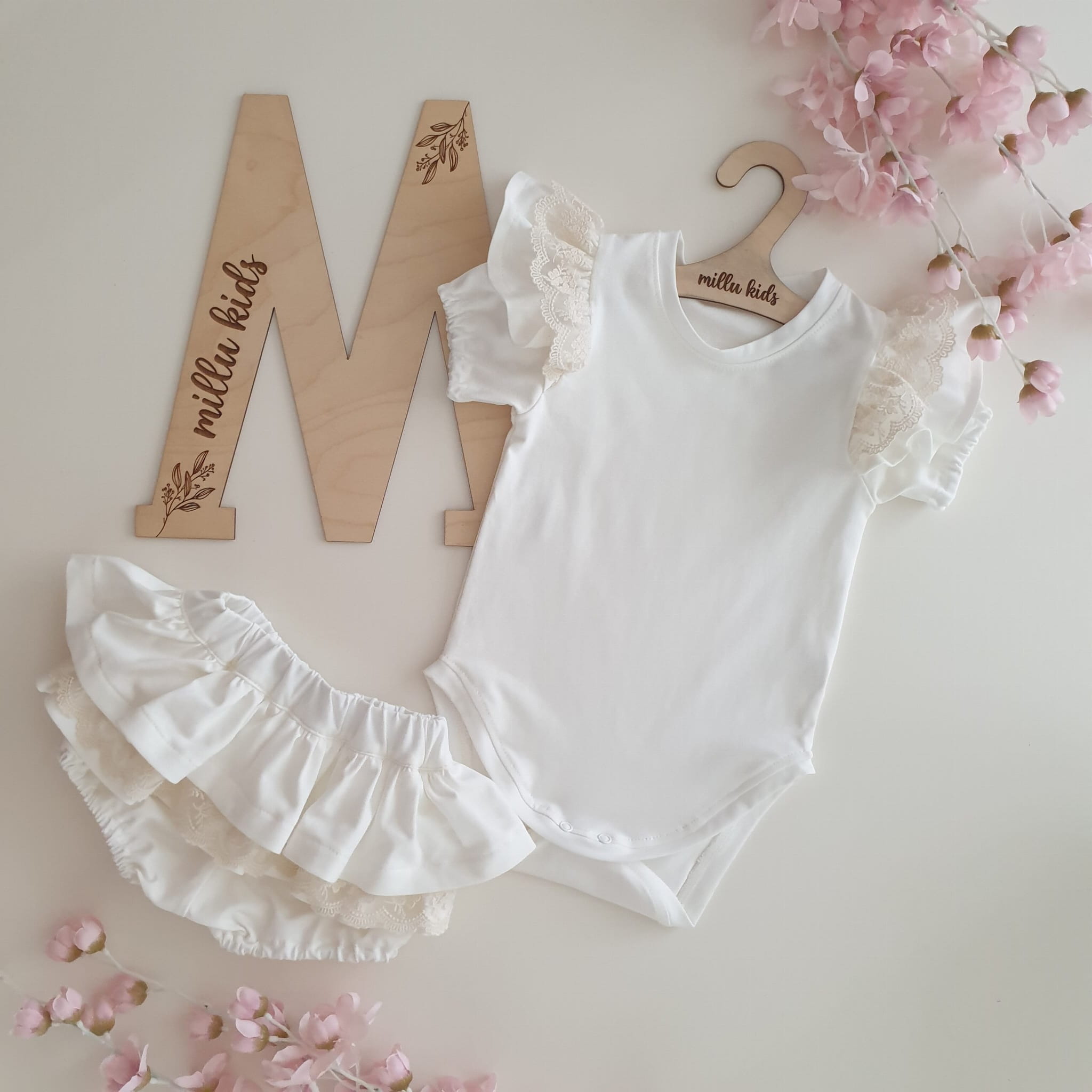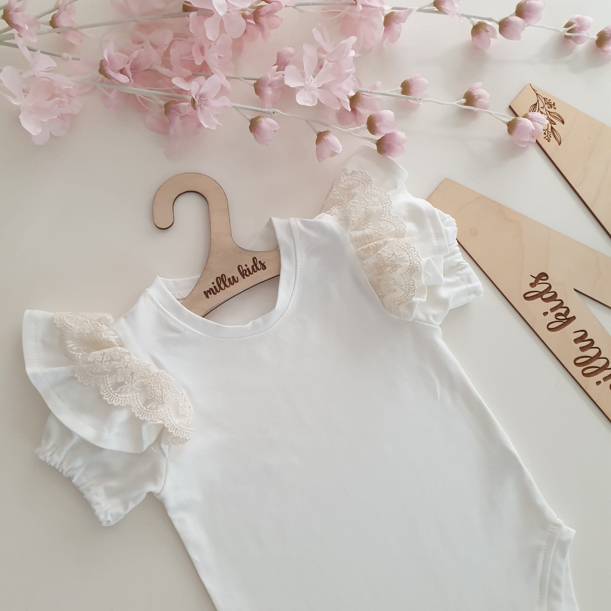 Na ramionach piękne koronkowe falbaneczki.