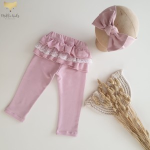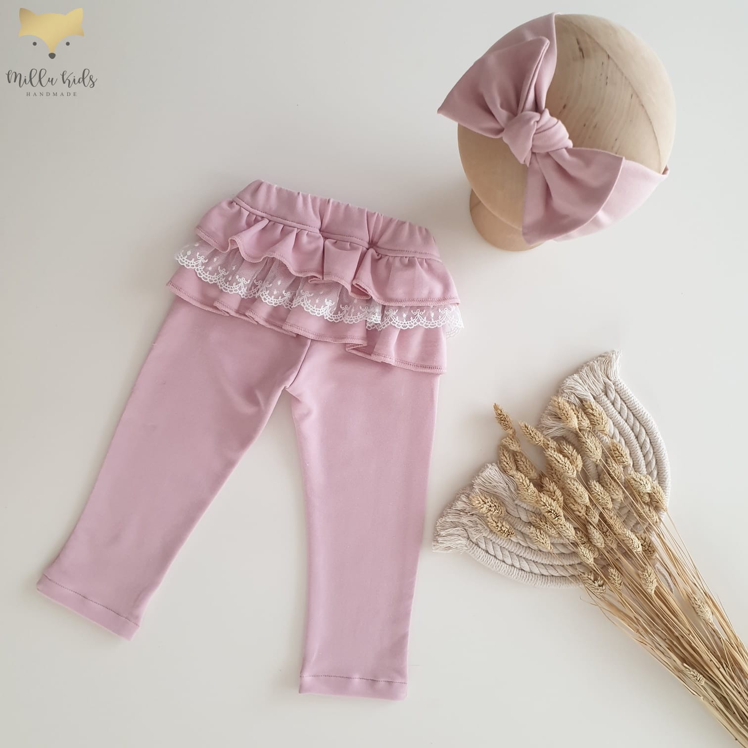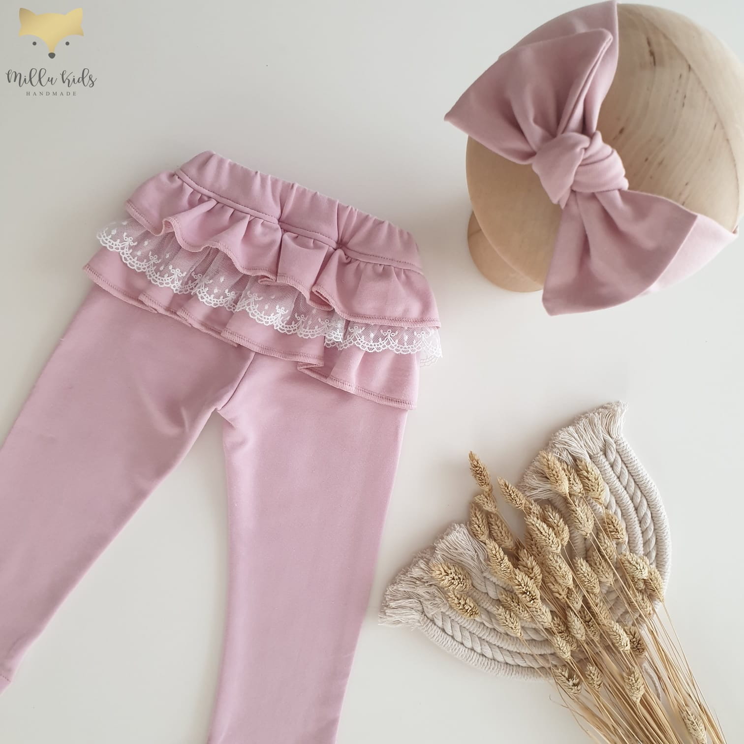 Spodnie z trzema falbankami w kolorze pudrowego różu